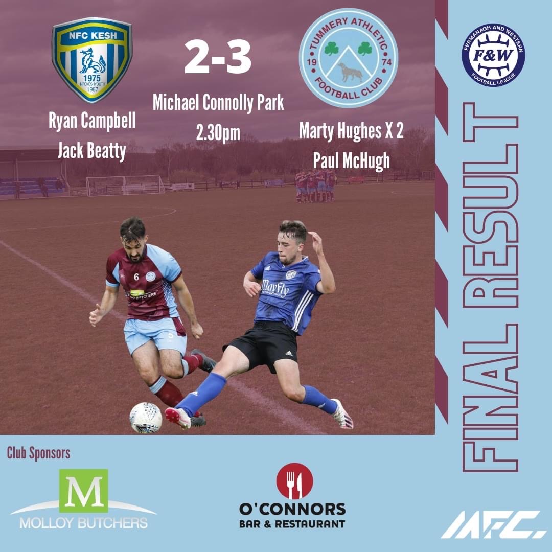 Thanks to all our fans who made the trip to kesh today and were the 12th man for us today a cheered up on from minute 1 to minute 97 and never let the setbacks deter us. We take on lisbellaw united at home on Tuesday night at 6.45 please come in numbers and cheer the lads on as we chase another 3 big points