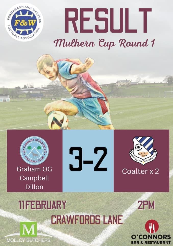 We progress to the next round of the Mulhern cup and take on Killen Rangers in the next round away from home.